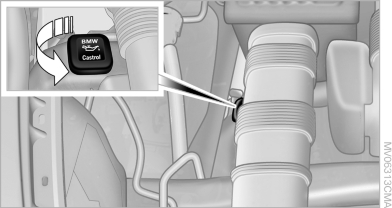 Add a maximum quantity of 1 US quart/1 liter of oil only after the corresponding message appears on the Control Display.