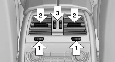 Toward red: warmer. - Lever for changing the air flow direction, arrow 2.