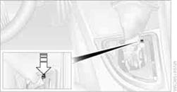 Overriding selector lever lockIf the selector lever will not move out of position P even though the ignition is switched on, the brake is depressed, and the button on the selector lever is pressed, the selector lever lock can be overridden: