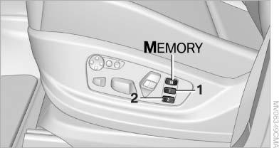 4. Press the desired memory button 1 or 2. The LED goes out.